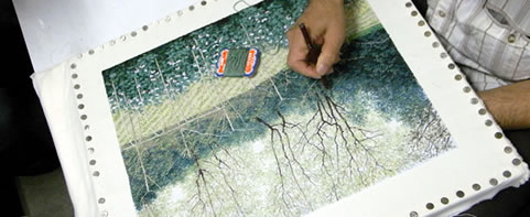 A masterpiece with three-dimensional effects like watercolor paintings, with this unique artform, using simple and beautiful colorful fabric and needle.